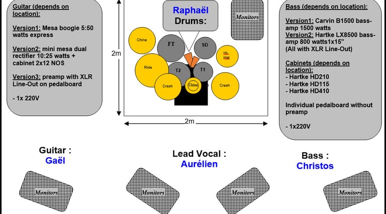 Ci-dessous notre fiche technique. Nous pouvons également apporter notre propre sonorisation ainsi que des lumières pour des évènements en intérieur (restaurants, bars, soirée privées)